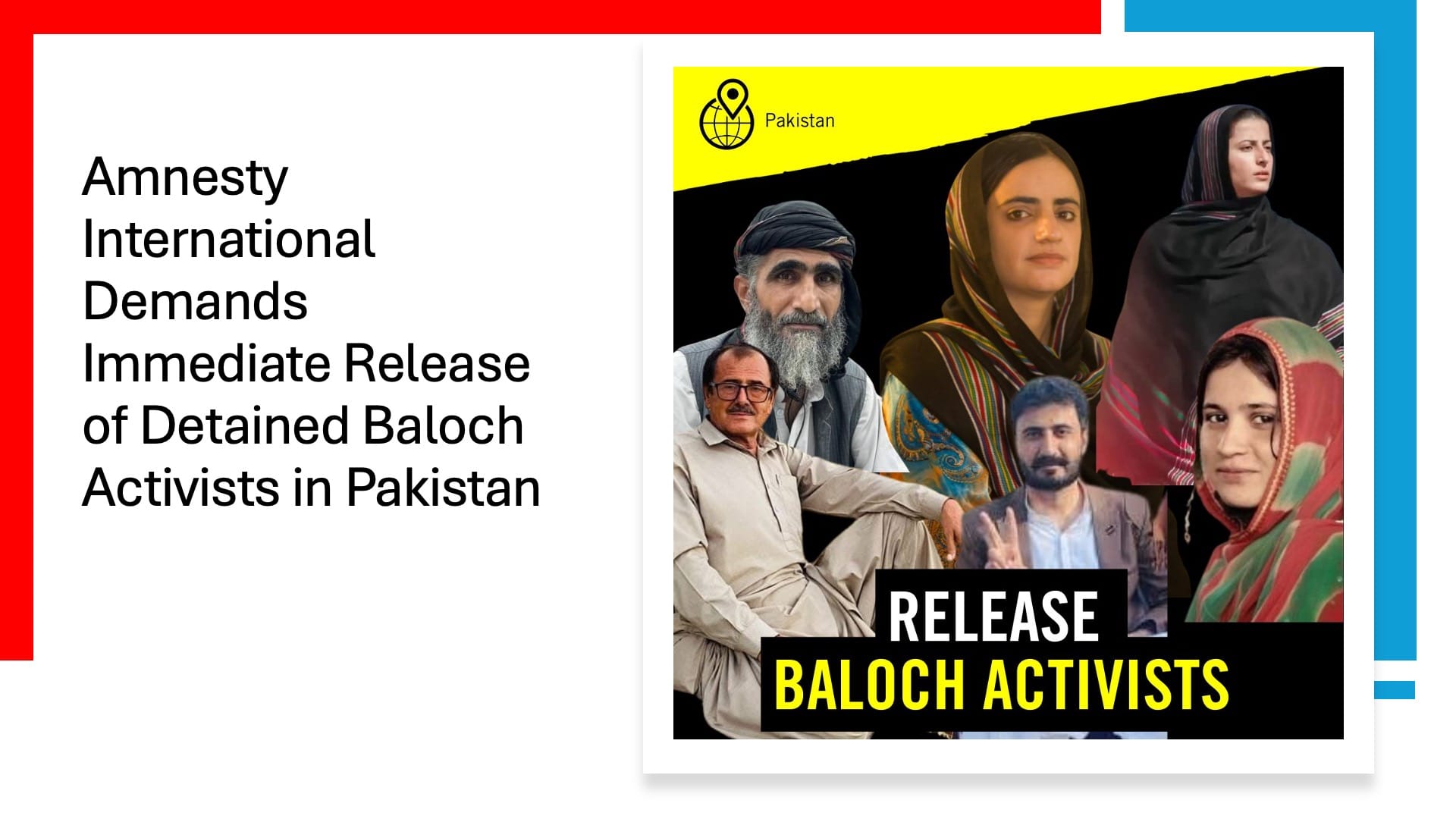 - Release all Baloch activists detained solely for peaceful protest and free expression.