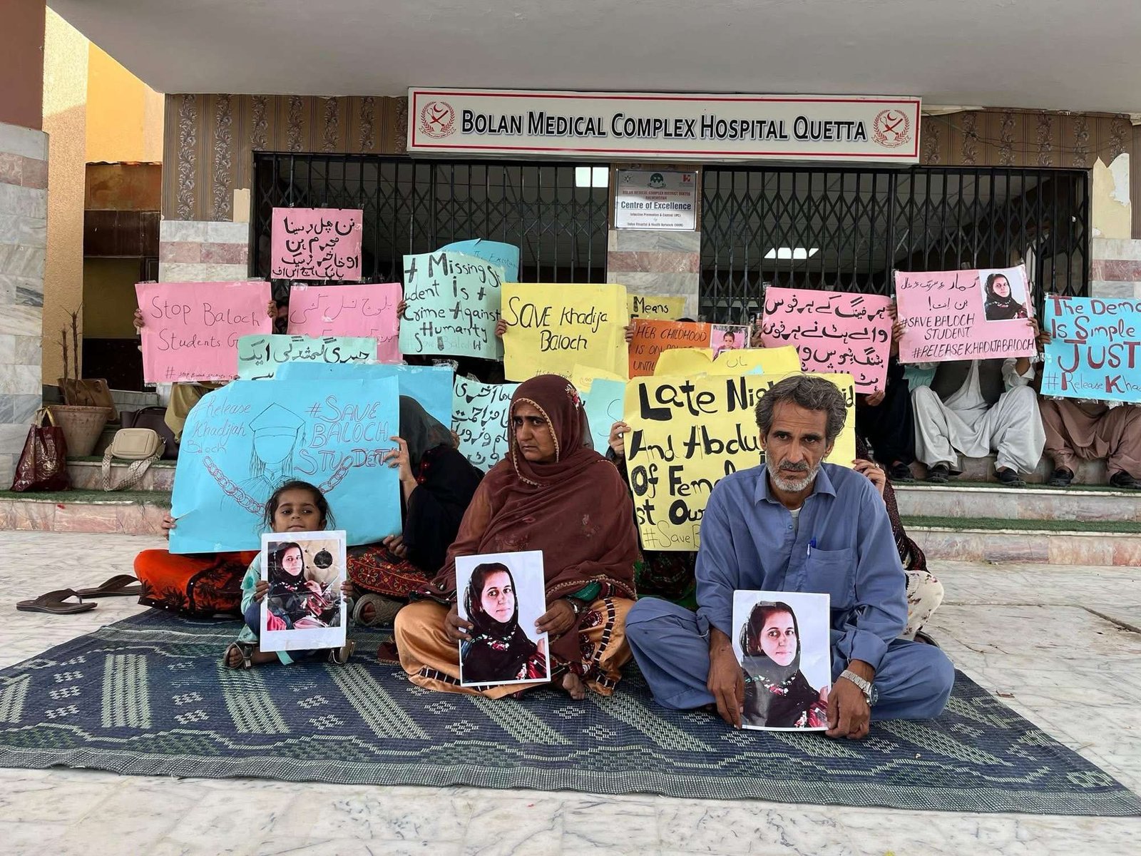 Family members of Khadija Baloch, who they say has been missing, have remained on the road in front of the hospital, calling for her recovery. Protesters state that officials have yet to take substantive steps to address their concerns, while the continued lack of engagement has added to their distress.