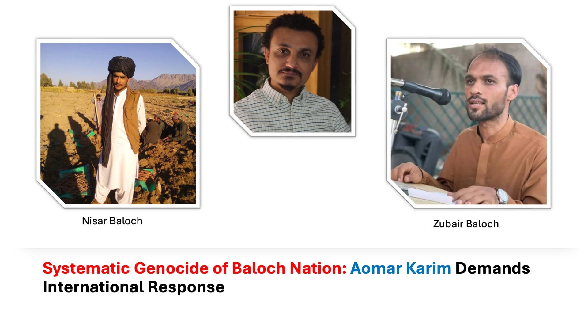 This post highlights the systematic killings of Zubair Baloch and Nisar Baloch in Balochistan. It calls on the international community to take immediate action against human rights violations and the ongoing Baloch genocide.